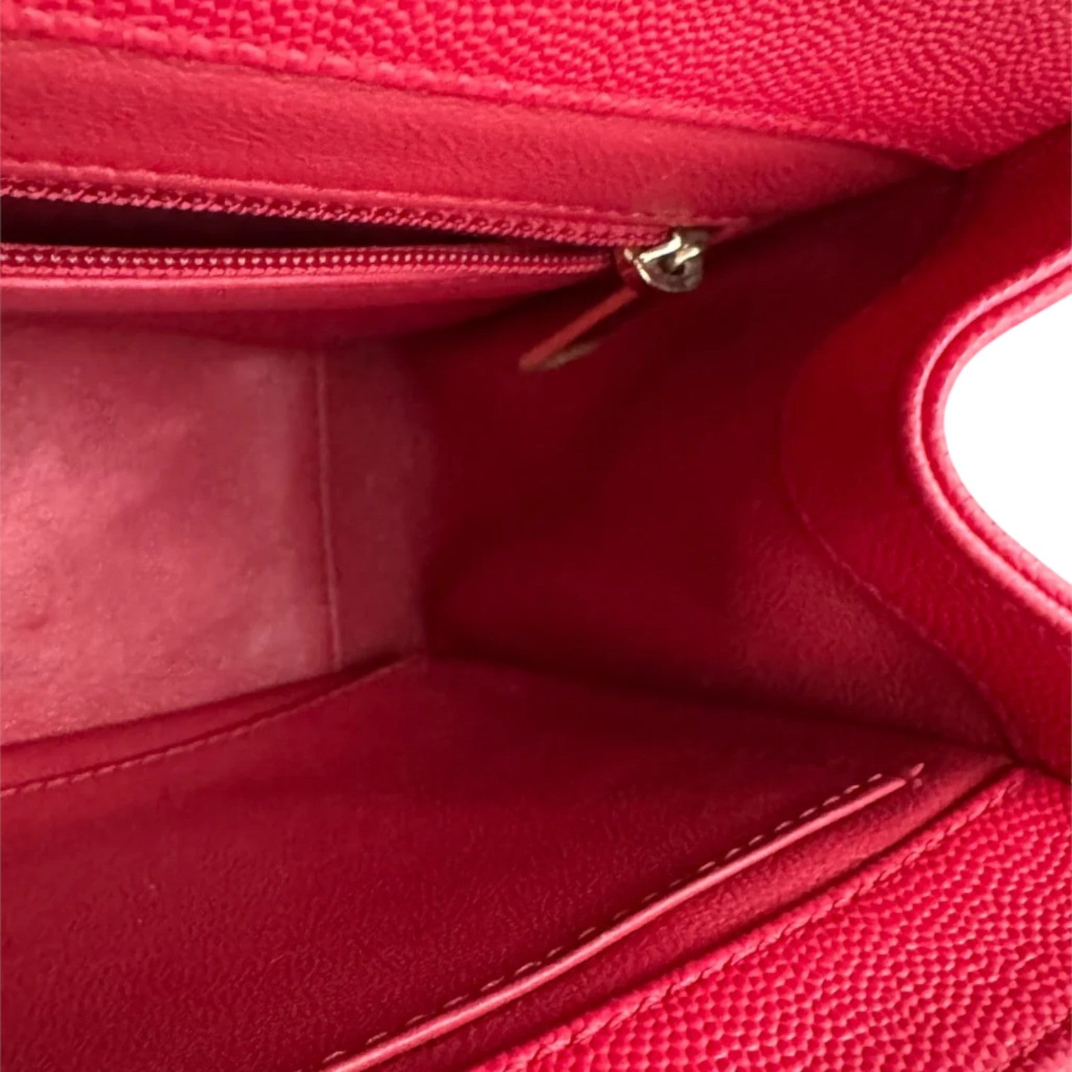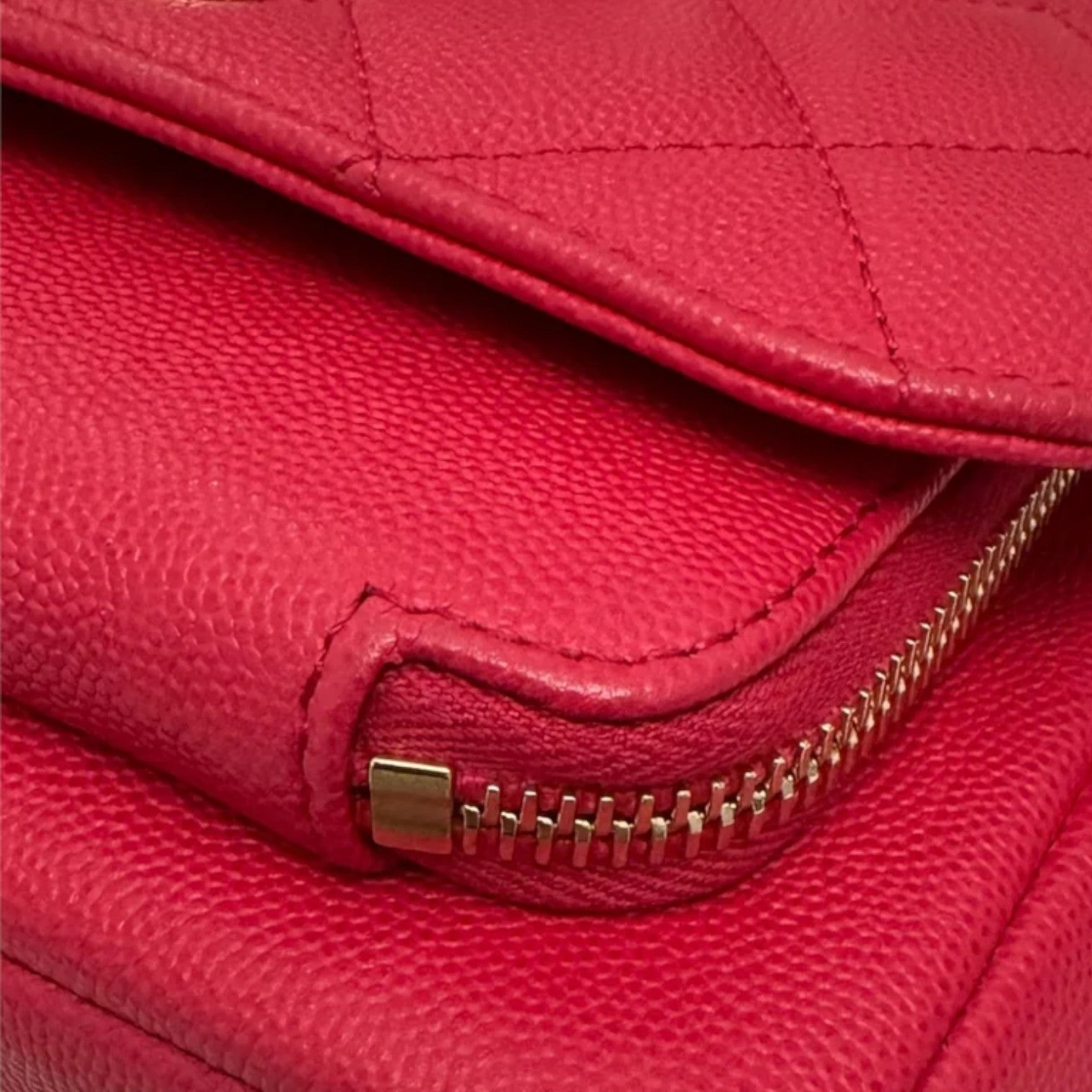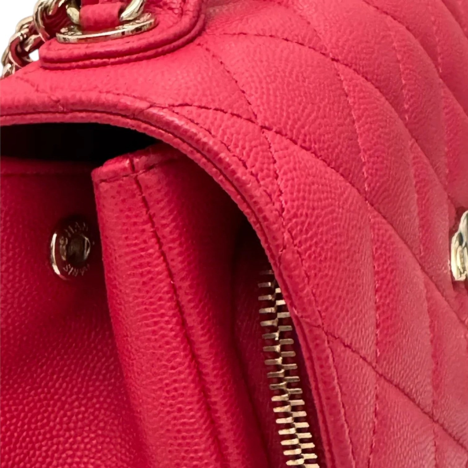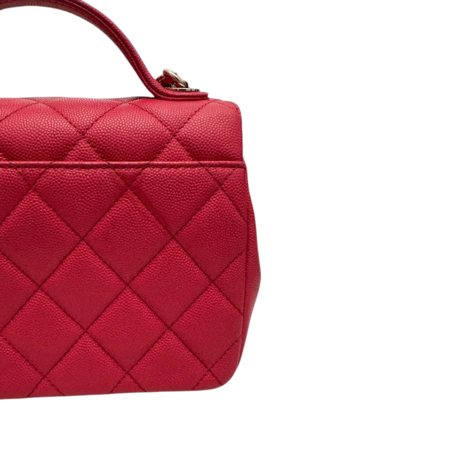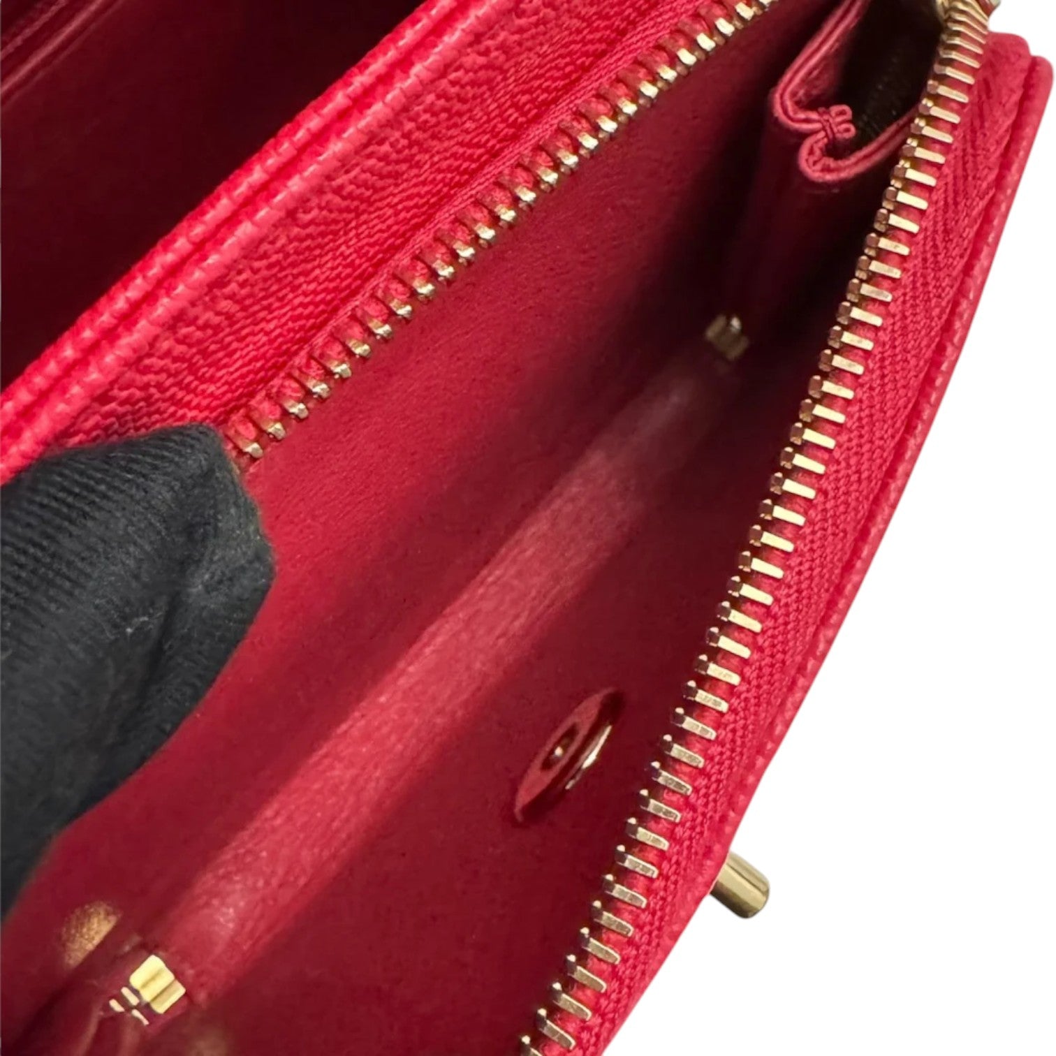 This is an authentic Chanel Business Affinity Flap Small Caviar Quilted in Red. This stylish bag is made of grained caviar calfskin leather. The shoulder bag features a sturdy leather top handle, a gold chain link leather threaded shoulder strap with a shoulder pad, a rear patch pocket, and a gold CC turn lock closure. This opens the flap to a matching leather interior with zipper and patch pockets.
