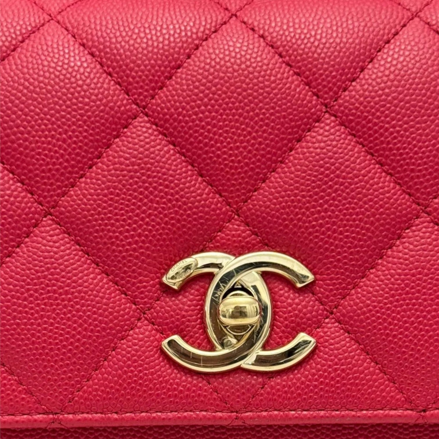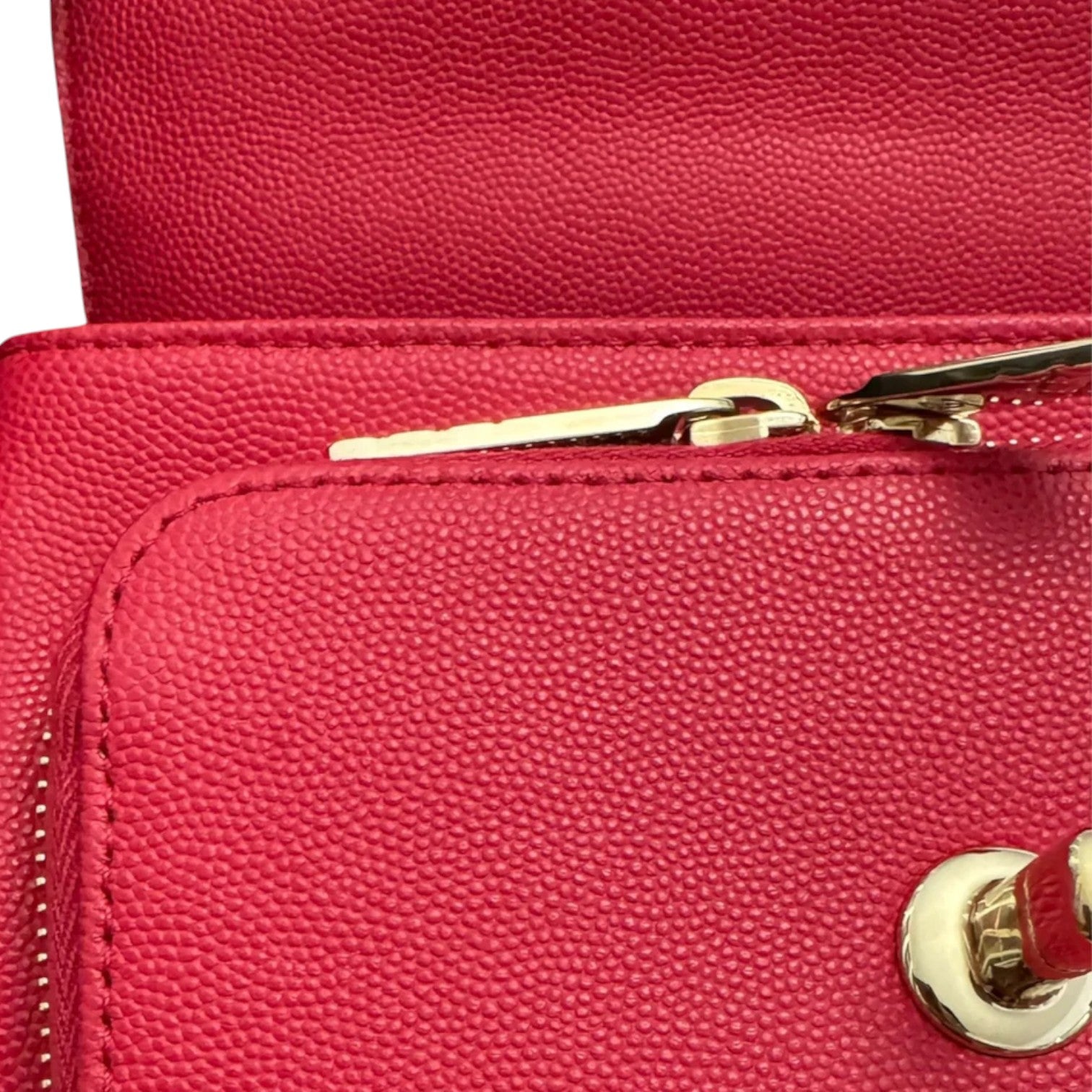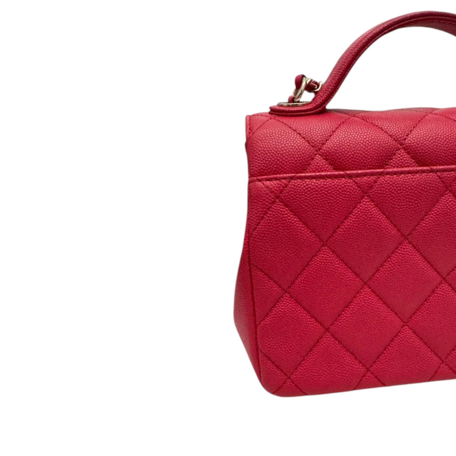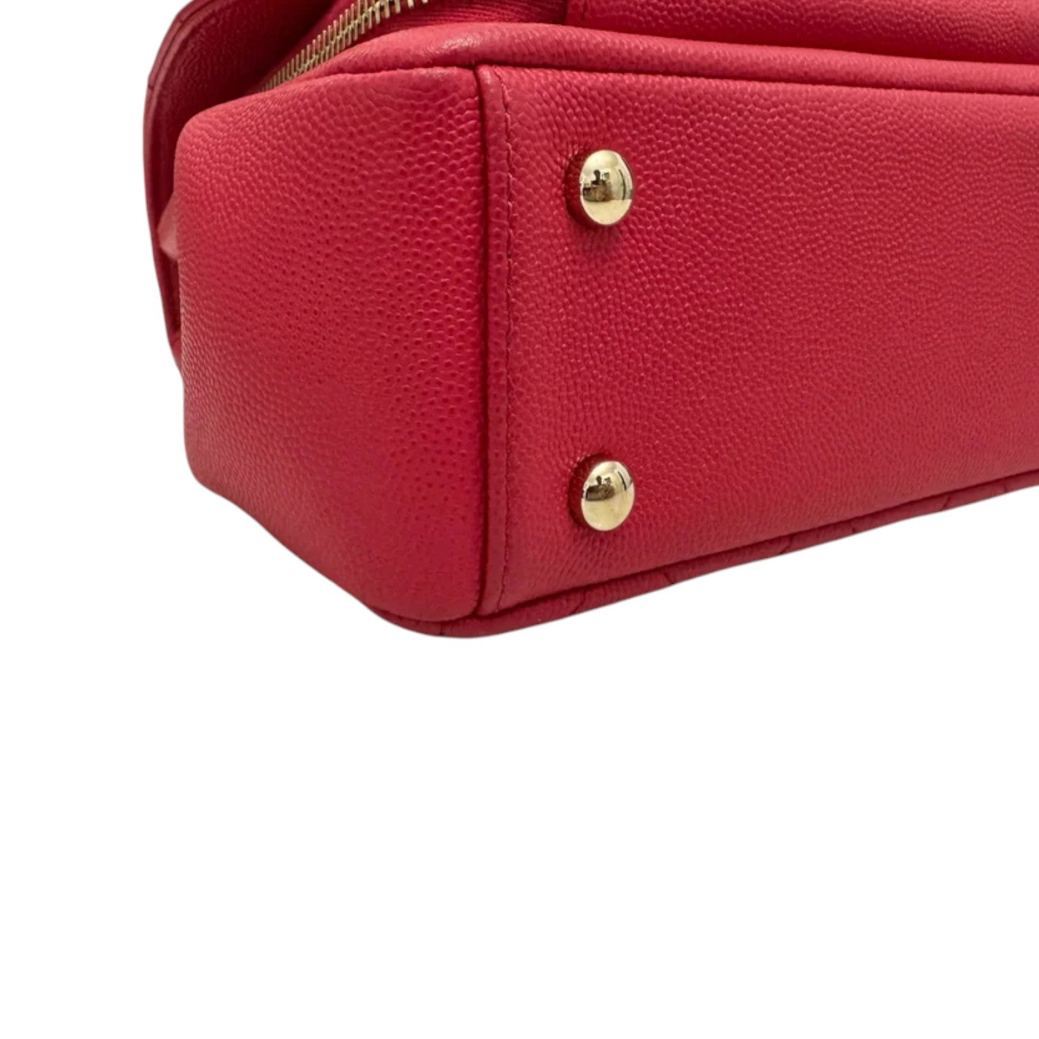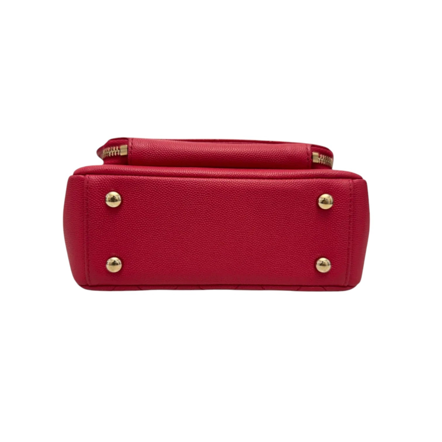 This is an authentic Chanel Business Affinity Flap Small Caviar Quilted in Red. This stylish bag is made of grained caviar calfskin leather. The shoulder bag features a sturdy leather top handle, a gold chain link leather threaded shoulder strap with a shoulder pad, a rear patch pocket, and a gold CC turn lock closure. This opens the flap to a matching leather interior with zipper and patch pockets.