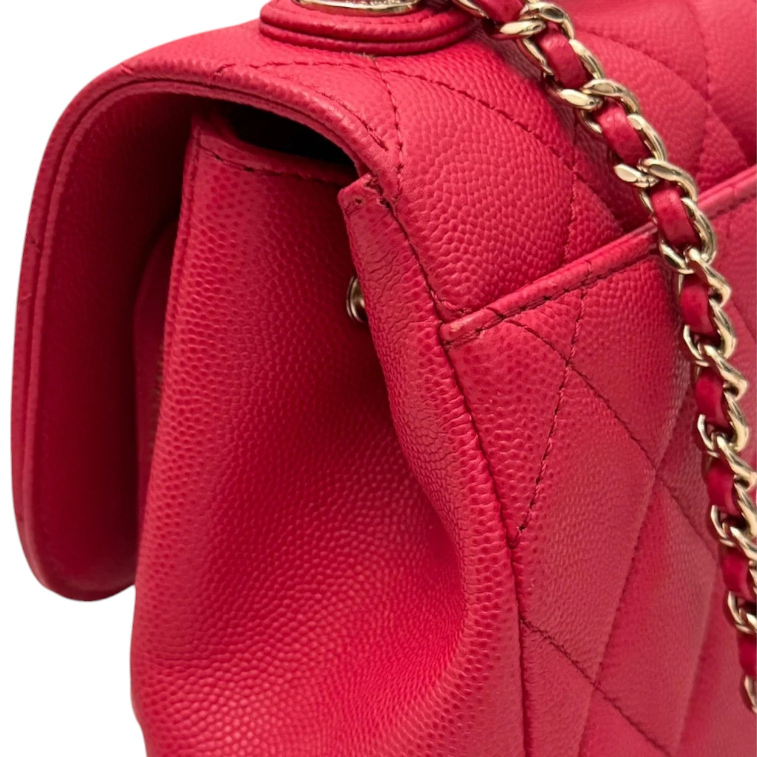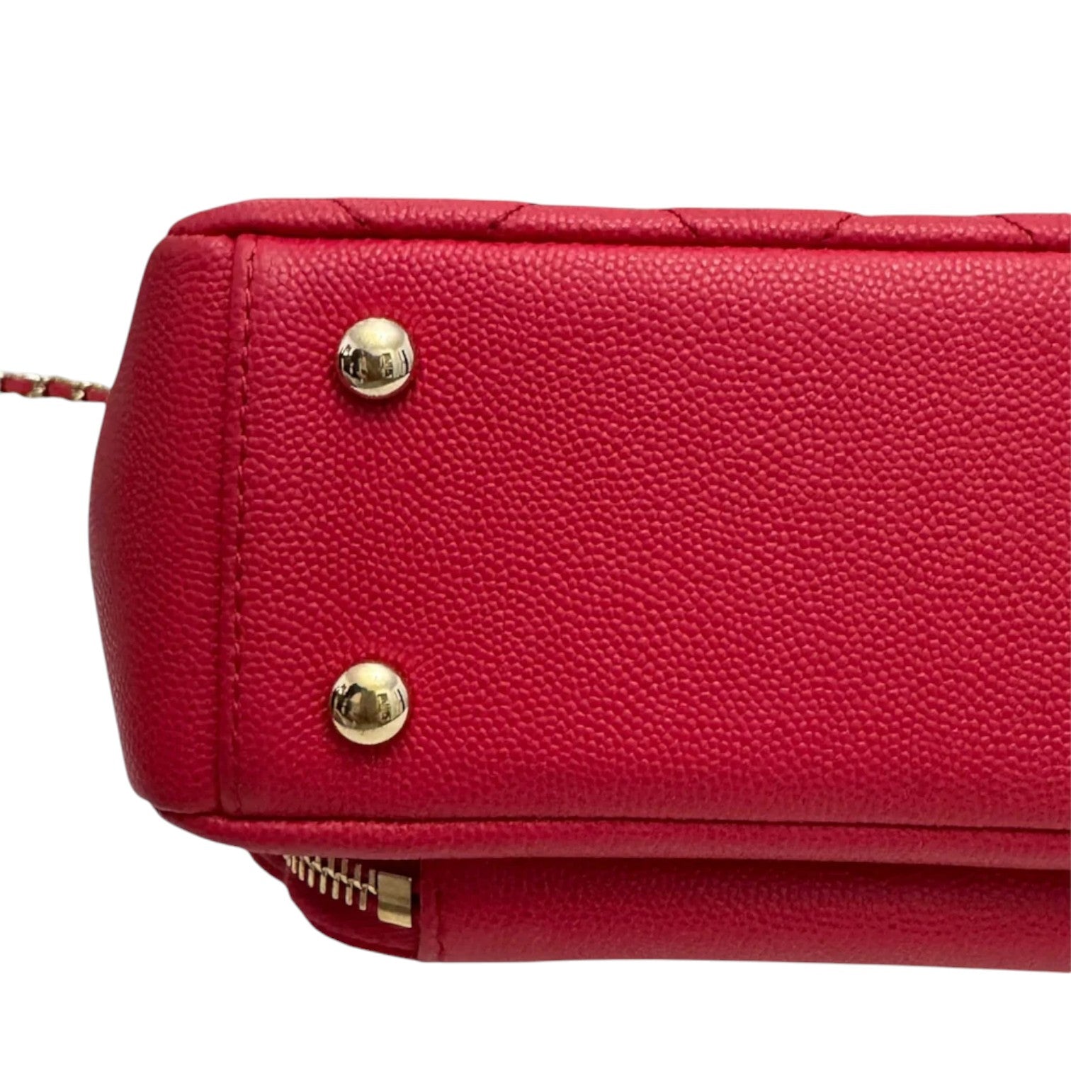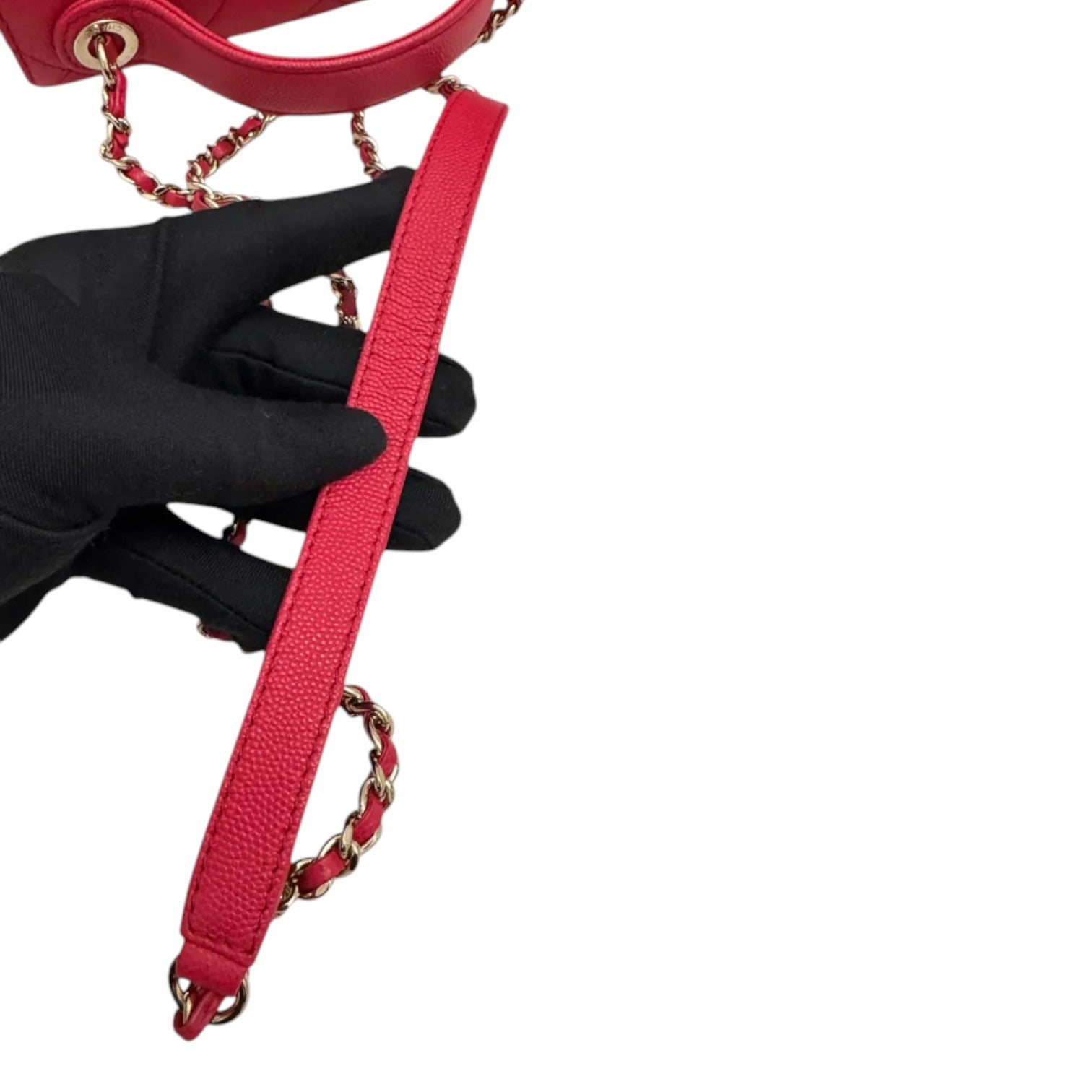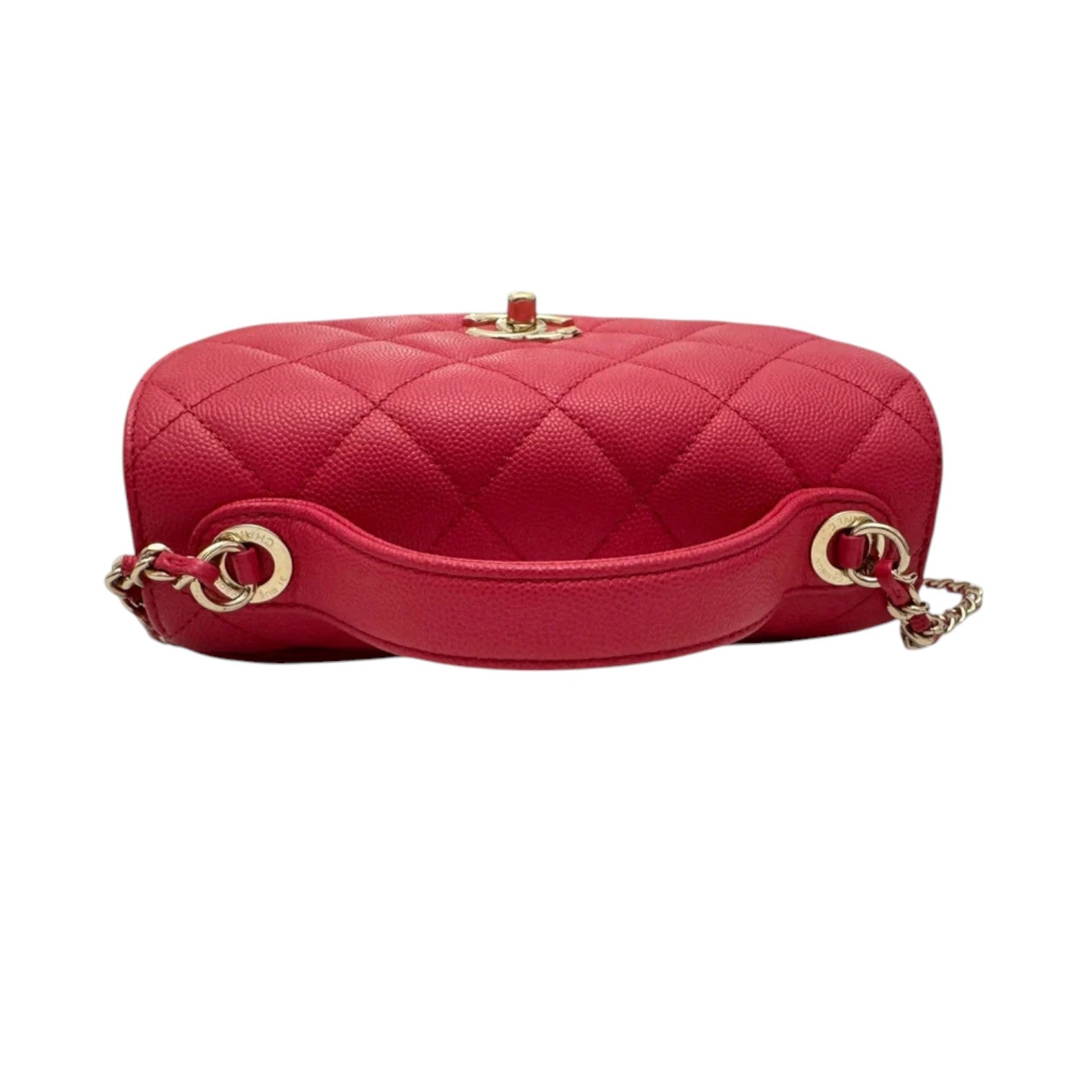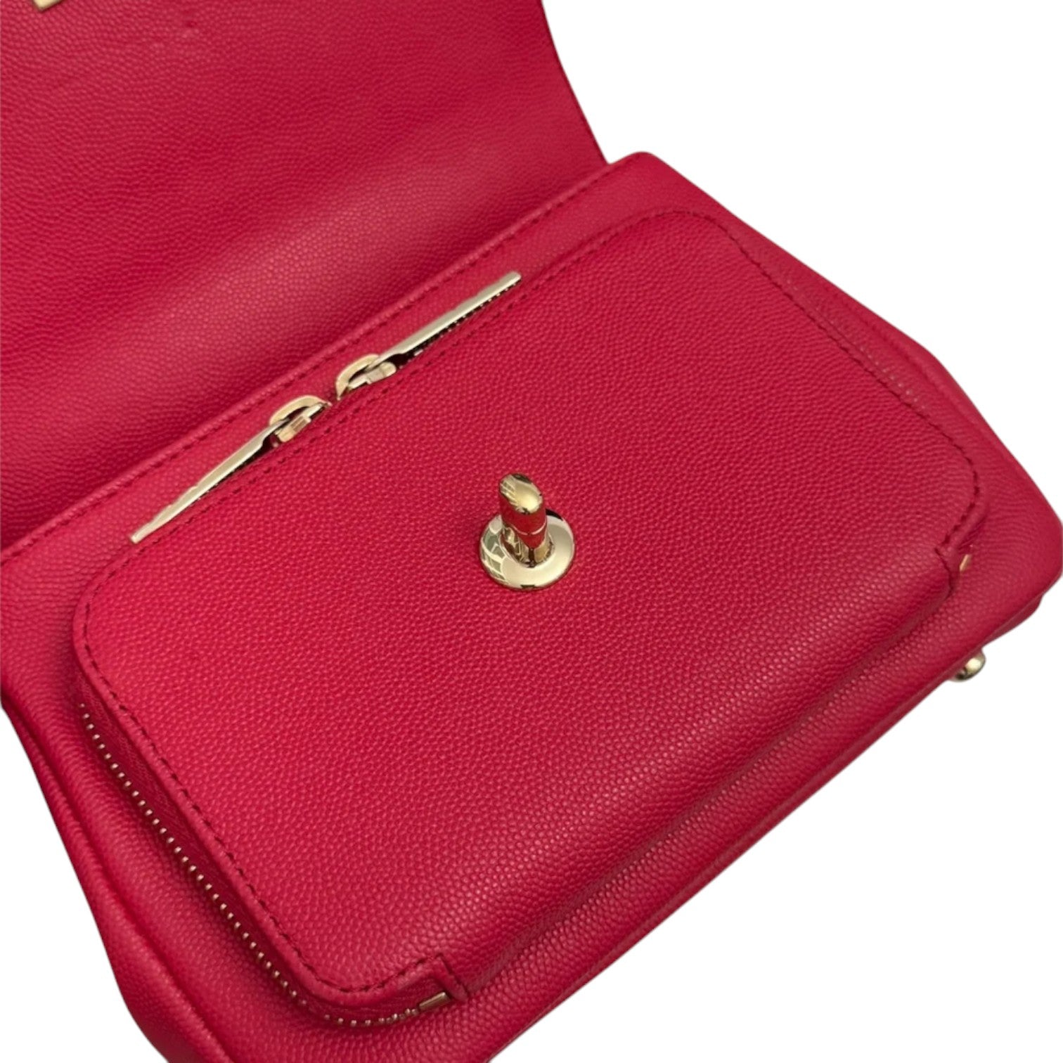 This is an authentic Chanel Business Affinity Flap Small Caviar Quilted in Red. This stylish bag is made of grained caviar calfskin leather. The shoulder bag features a sturdy leather top handle, a gold chain link leather threaded shoulder strap with a shoulder pad, a rear patch pocket, and a gold CC turn lock closure. This opens the flap to a matching leather interior with zipper and patch pockets.
