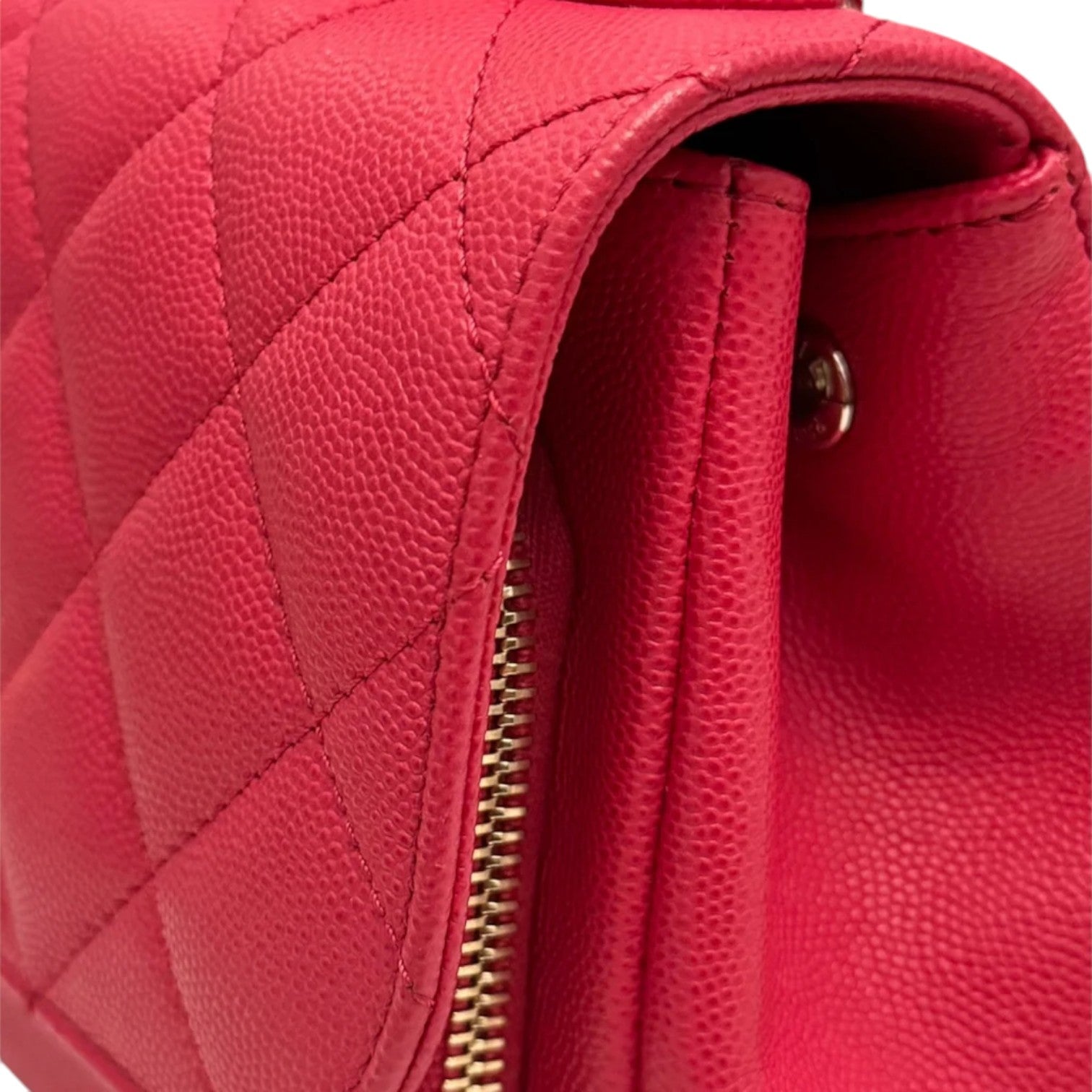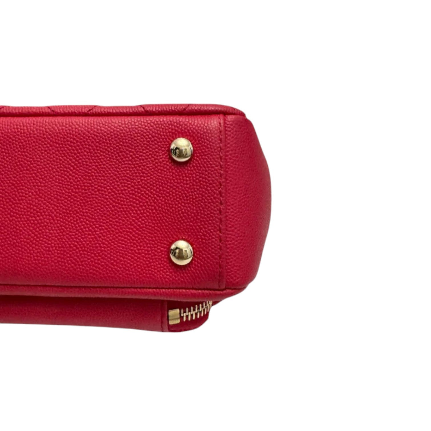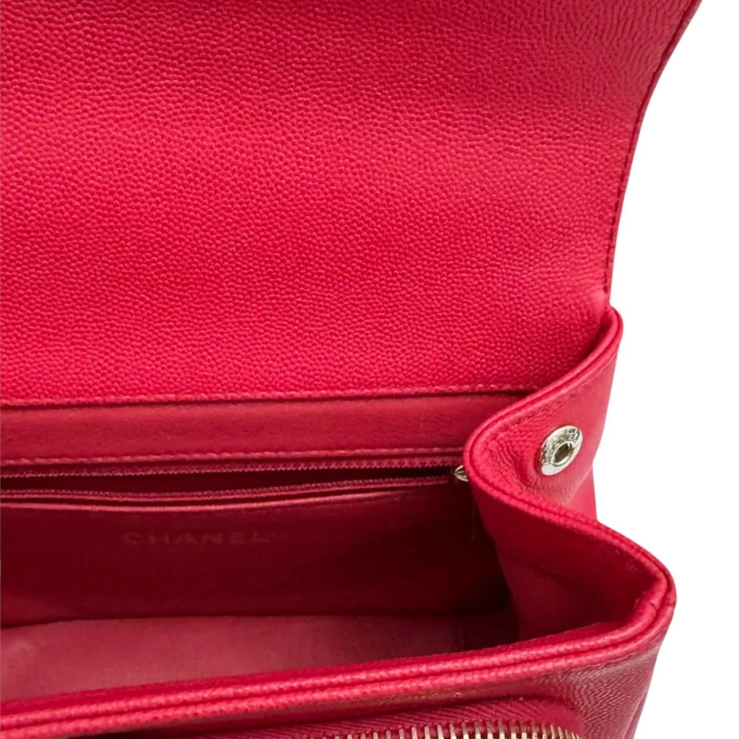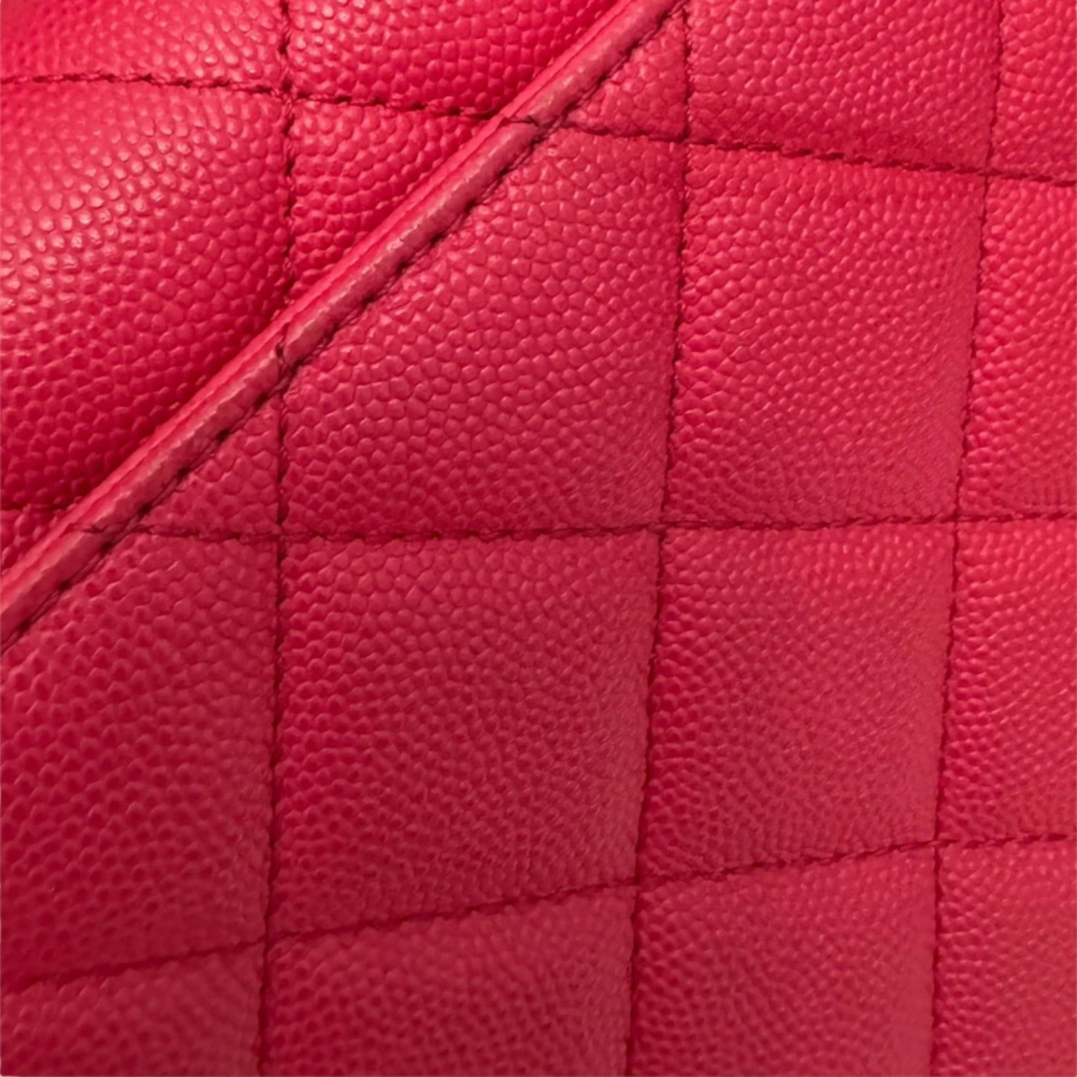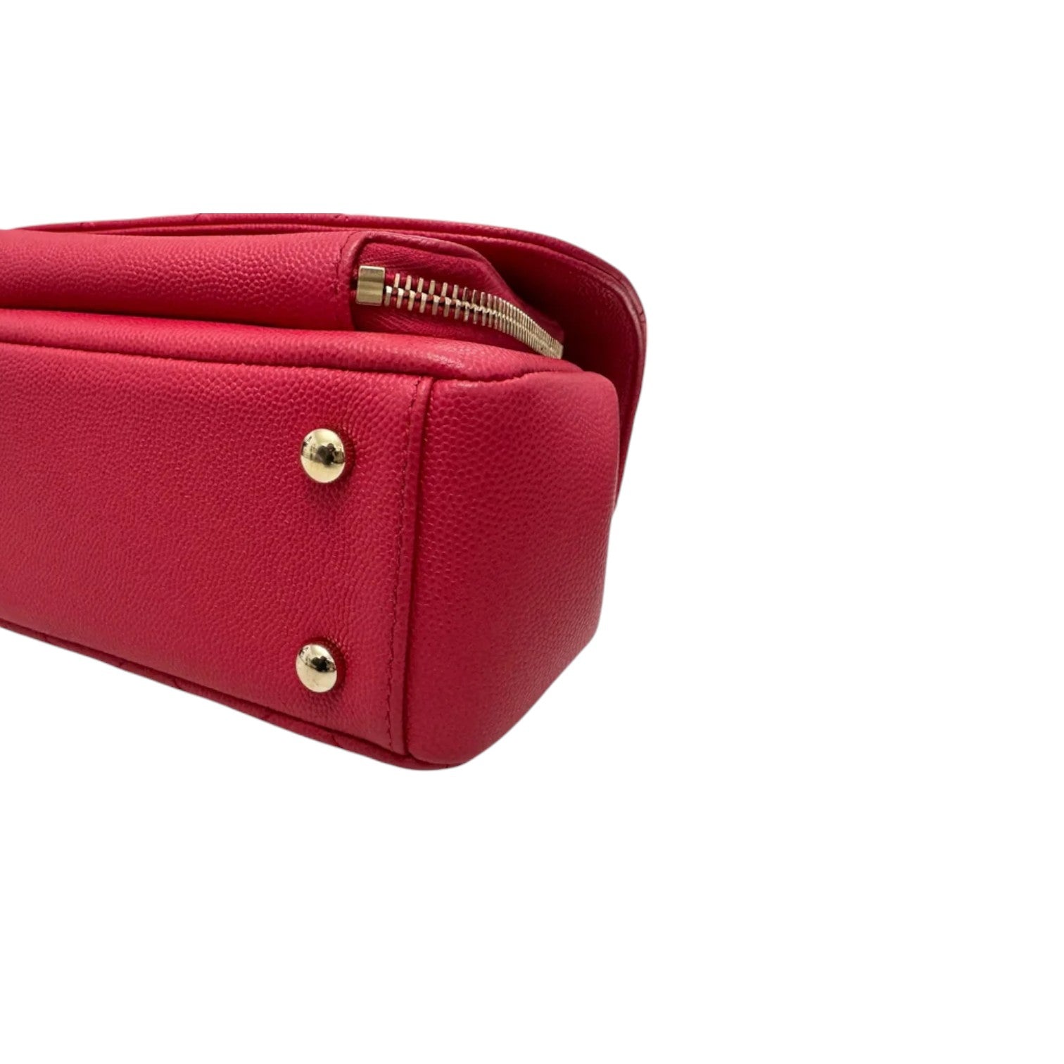 This is an authentic Chanel Business Affinity Flap Small Caviar Quilted in Red. This stylish bag is made of grained caviar calfskin leather. The shoulder bag features a sturdy leather top handle, a gold chain link leather threaded shoulder strap with a shoulder pad, a rear patch pocket, and a gold CC turn lock closure. This opens the flap to a matching leather interior with zipper and patch pockets.