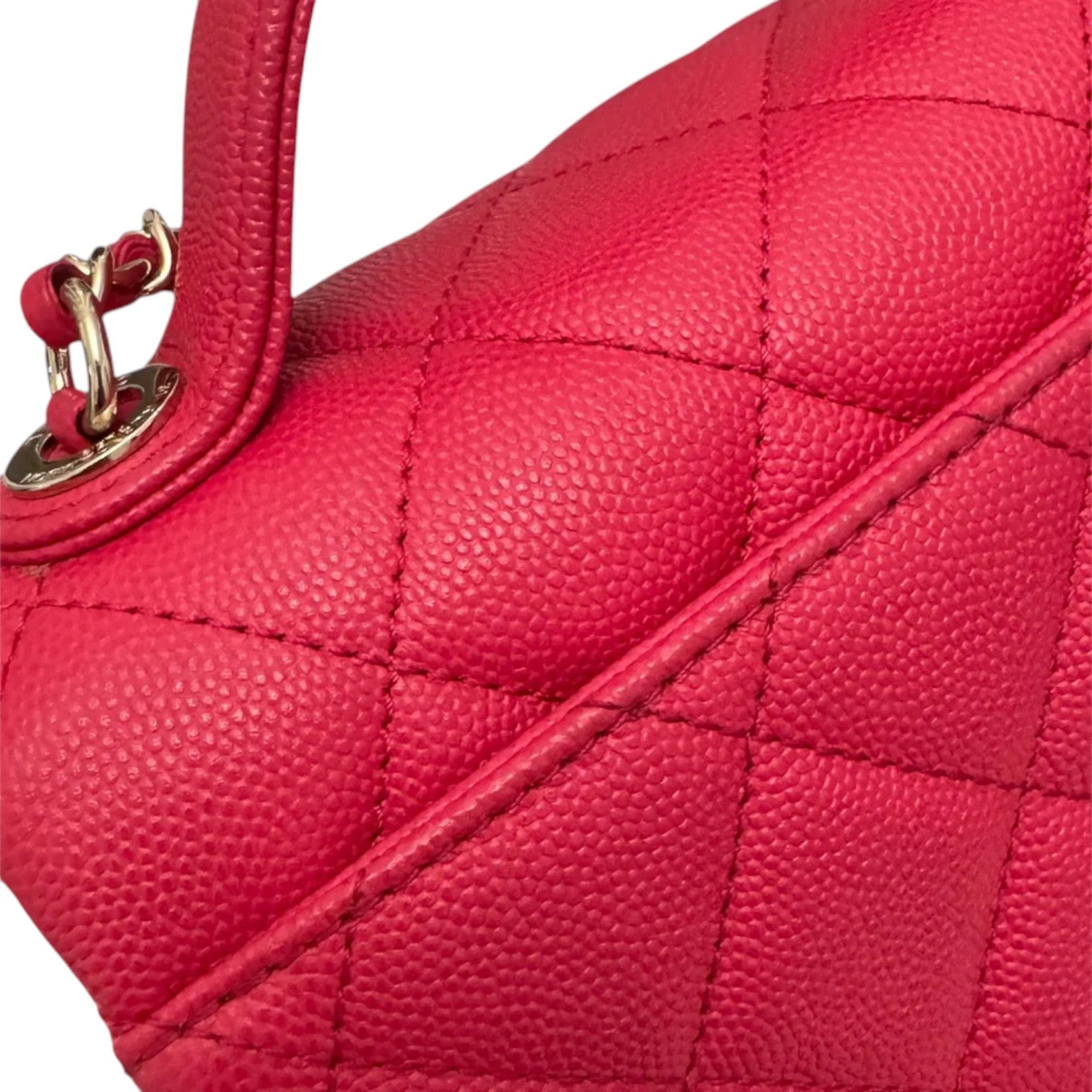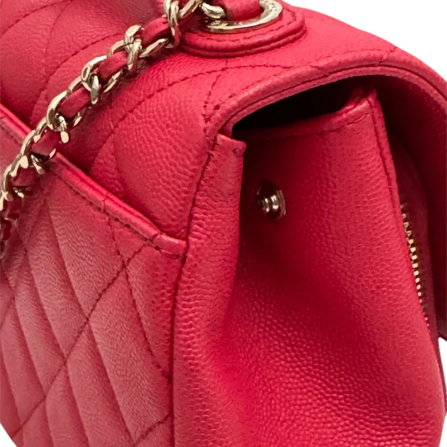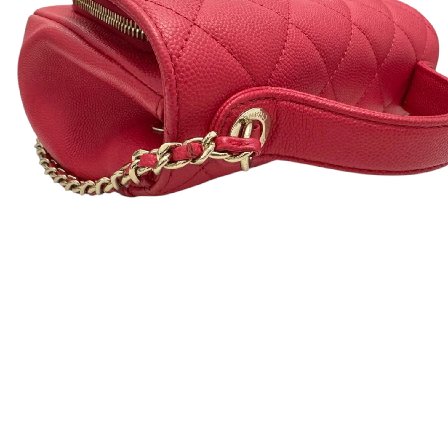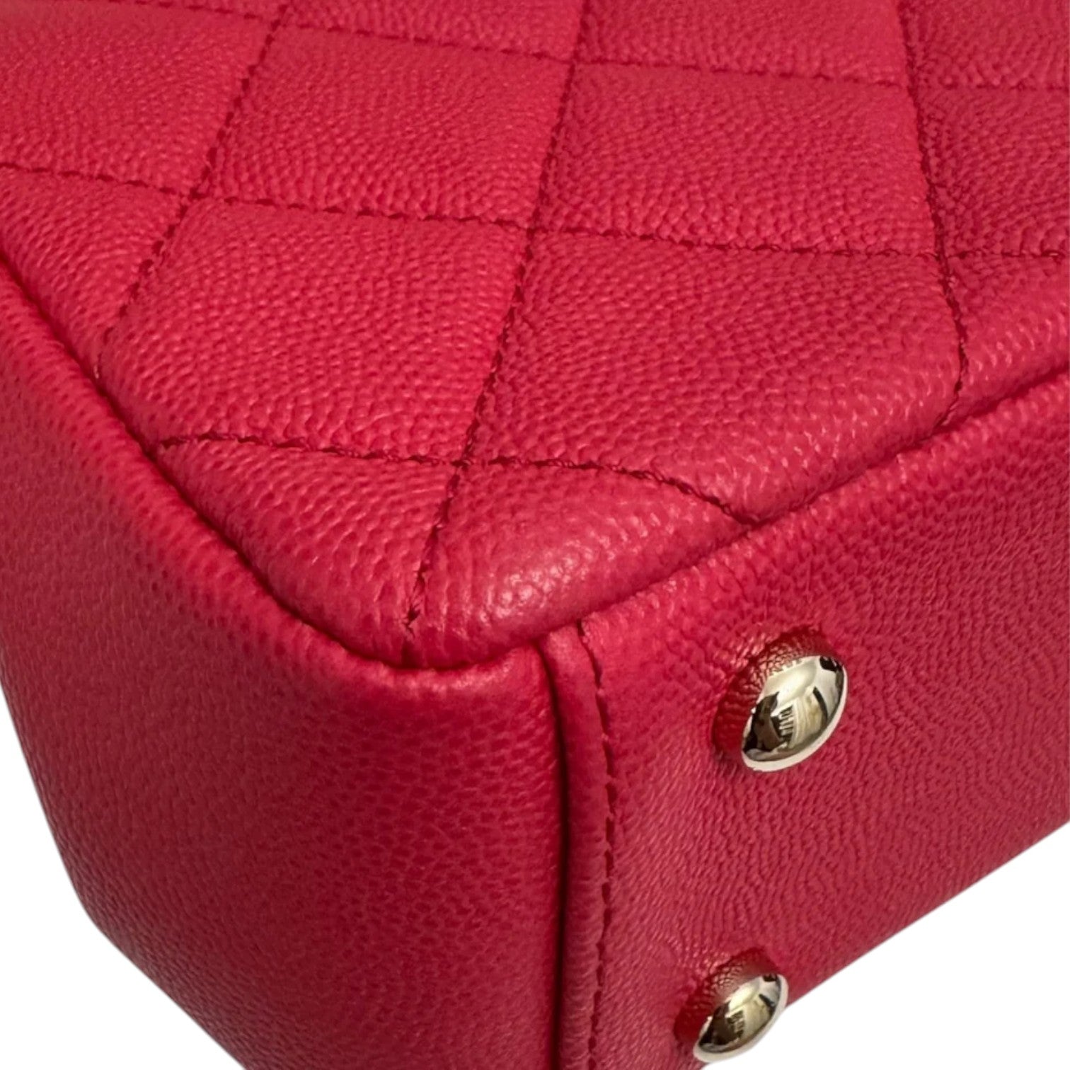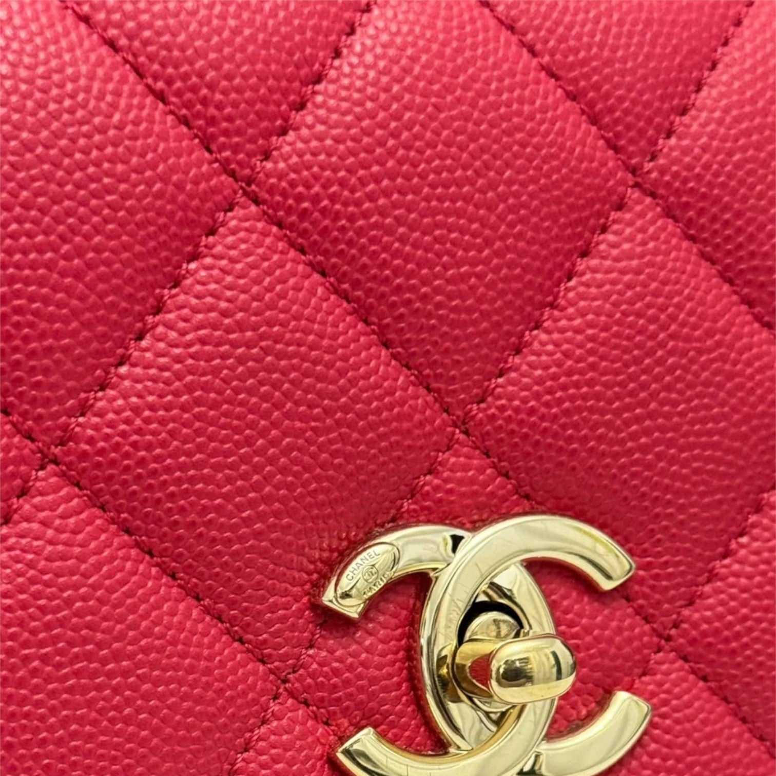This is an authentic Chanel Business Affinity Flap Small Caviar Quilted in Red. This stylish bag is made of grained caviar calfskin leather. The shoulder bag features a sturdy leather top handle, a gold chain link leather threaded shoulder strap with a shoulder pad, a rear patch pocket, and a gold CC turn lock closure. This opens the flap to a matching leather interior with zipper and patch pockets.